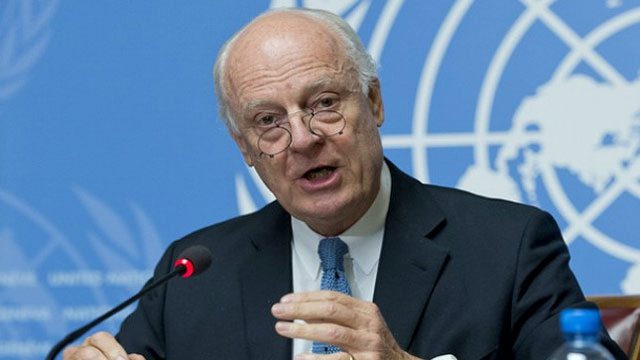 Mistura, danışmanı Jan Egeland ile Uluslararası Suriye Destek Grubu'nun İnsani Erişim Çalışma Grubuna ilişkin BM Cenevre Ofisi'nde basın toplantısı düzenledi.