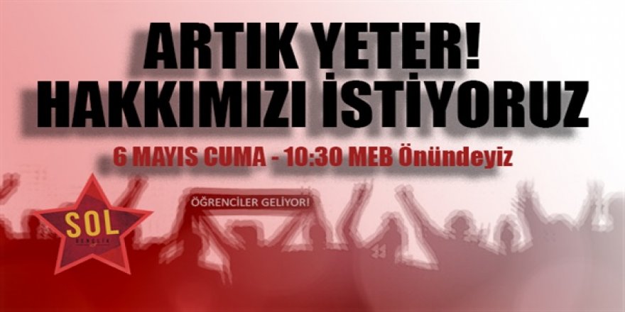 Sol Hareket’ten yapılan duyuruda, Sol Geçlik’in 6 Mayıs Cuma günü Milli Eğitim Bakanlığından Maliye Bakanlığına saat 10.30’da yürüyüş düzenleyeceği kaydedildi.