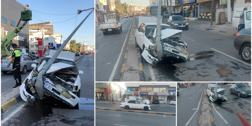 Lefkoşa'da bu sabah erken saatlerde süratli bir şekilde araç kullanan DT 202 plakalı aracın sürücüsü direksiyon hakimiyetini kaybedip aydınlatma direğine çarptı.