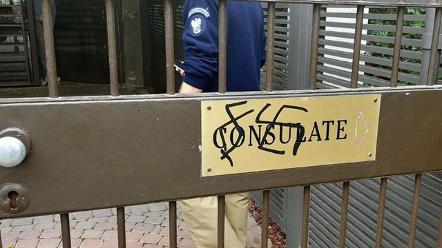 Polonya'nın Tel Aviv Büyükelçiliği’nin kapısına gamalı haç çizildi