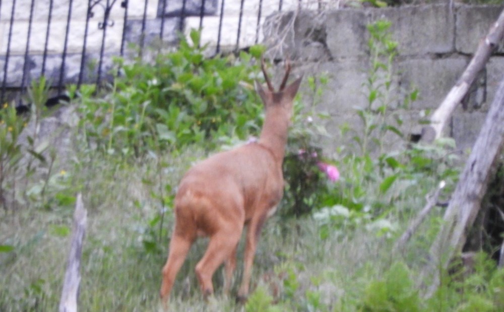 Rize’nin Hemşin ilçesinde, mahalleye inen karacalar, cep telefonuyla görüntülendi.