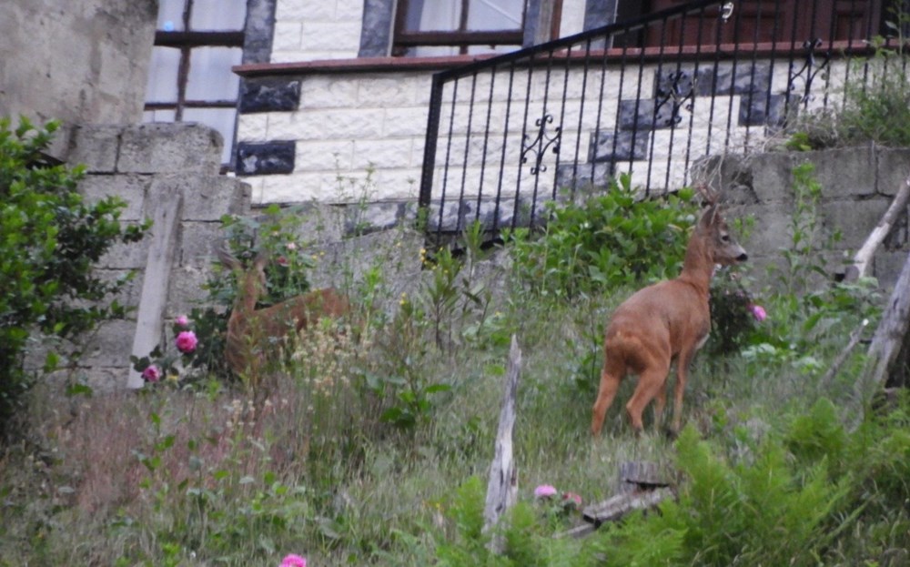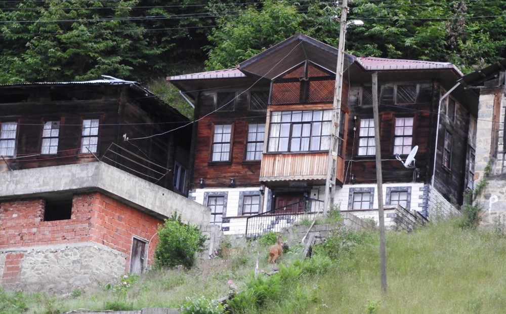 Rize'nin Hemşin ilçesine bağlı Bahar Mahallesi'ne iki karaca indi.