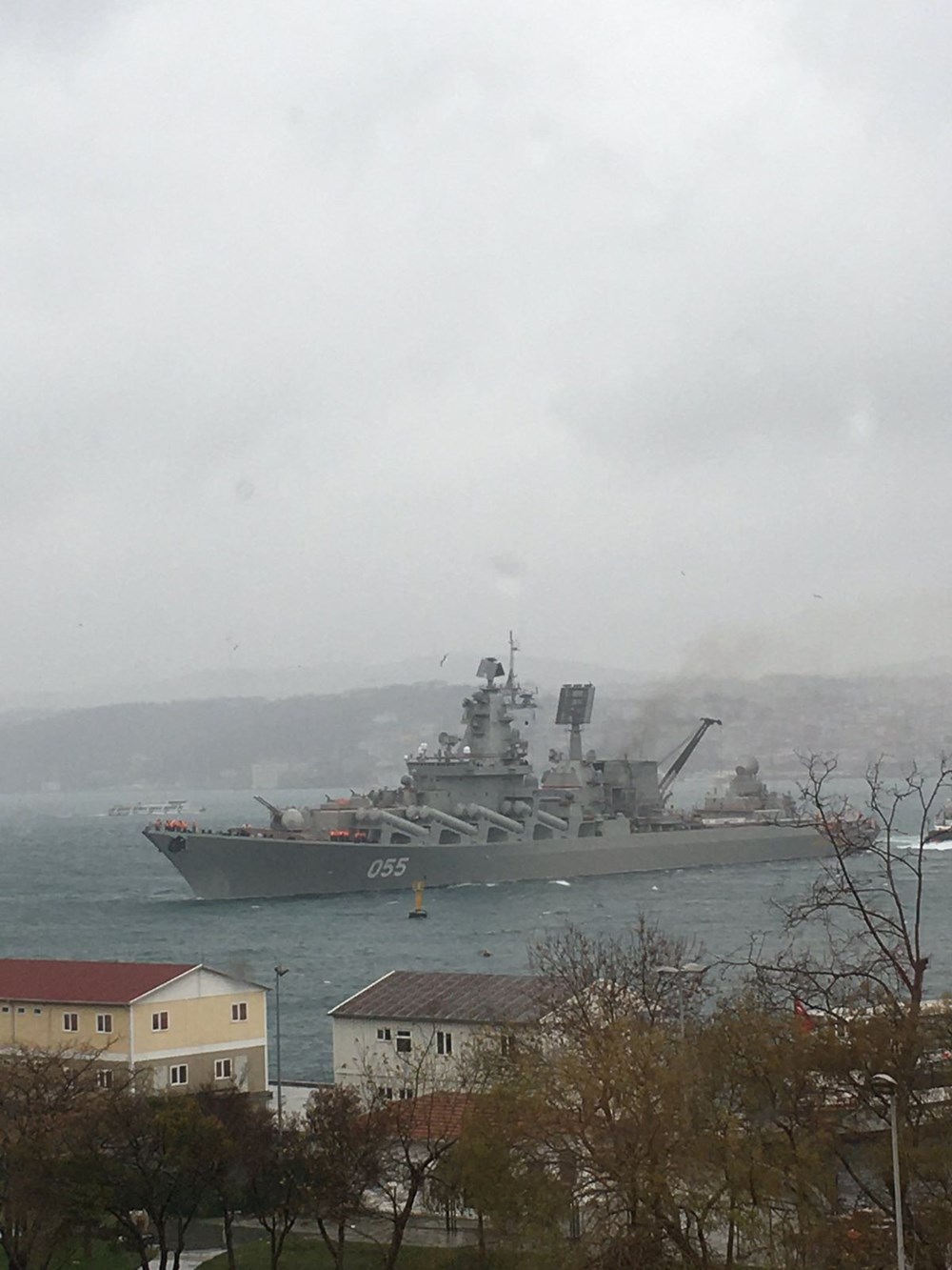 Rus Donanması'nın Kuzey filosuna ait 055 Borda numaralı Slava sınıfı füze gemisi 'Mareşal Ustinov' dün saat 15.30 sıralarında Karadeniz'den İstanbul Boğazı'na giriş yaptı. Geminin boğaz geçişine 3 sahil güvenlik ve 2 deniz polisi botu eşlik etti.