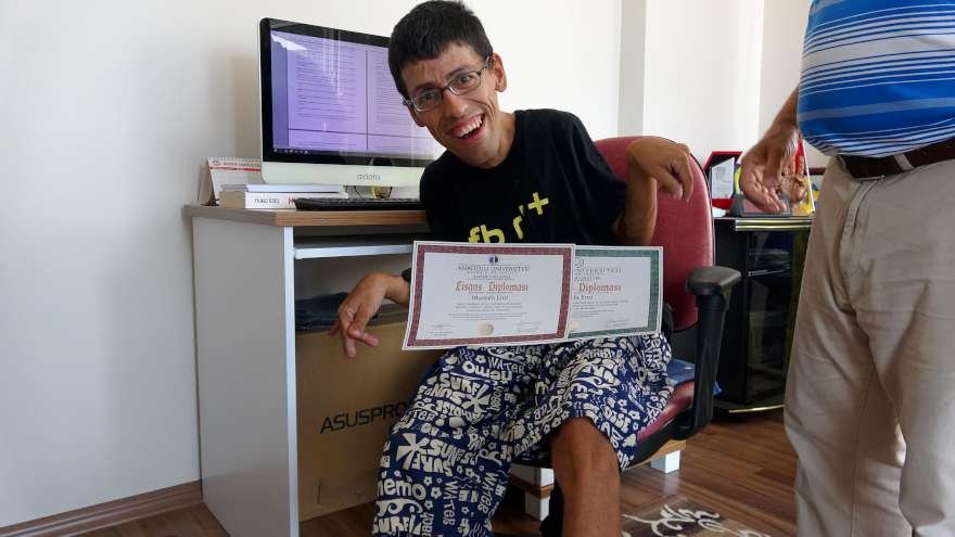 Eğitimini de bu şekilde tamamladı. 7 yılda kendi hayatını anlatan ‘Herkes Beni Engelli Sanıyor’ kitabını yazarak piyasaya çıkardı. Şimdi yine başka bir engelli gencin hayatını anlatan ikinci hikaye kitabını yazmaya başladı. Bu kitaptan sonraki hayali roman yazmak. Mustafa ile gurur duyuyoruz. Ailesi olarak her zaman onun yanında olduk. Başarısında bizim de katkımız olabilir ama en çok kendi başarısı. Mustafa’nın bu başarıları elde edeceğini inanamıyorduk.