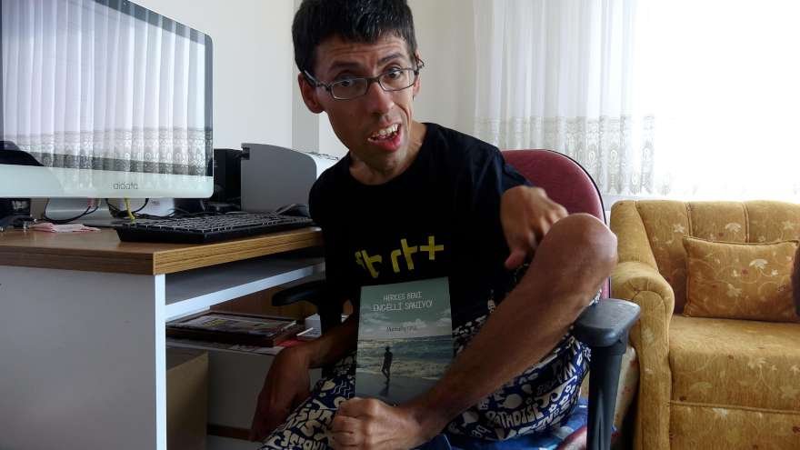 Kendi hayatını yazdığı “Herkes Beni Engelli Sanıyor” kitabını piyasaya çıkaran Erol, şimdi ikinci kitabını yazıyor. Foto: DHA