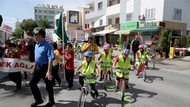 Yürüyüşün başında okul bahçesinde toplanan çocuklara seslene Trafik Kazalarını Önleme Derneği Başkanı Mehmet Avcı, bu yürüyüşün trafik için, büyükleri uyarmak için ve herkesin kendisini koruması için gerçekleştirileceğini anlatarak, dikkat çekilmesi gereken en önemli noktanın emniyet kemerinin bağlanması olduğunu kaydetti.