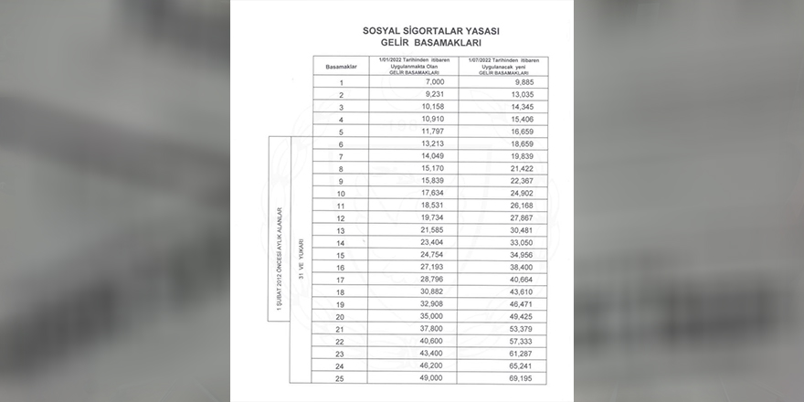 Sigortalıların 25 derece üzerinden yaşlarına göre girebilecekleri yeni gelir basamakları tablosu da Resmi Gazete’de yayımlandı.