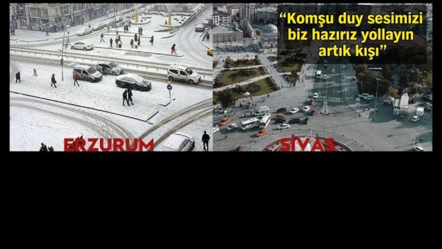Sivas Belediyesi'nin kar yağmaması nedeniyle sosyal medyada Erzurum Büyükşehir Belediyesi'ni etiketleyerek yaptığı "Hani kar Erzurum'da doğmuş Sivas'ta ikamet ediyordu. Komşu duy sesimizi biz hazırız yollayın artık kışı" çağrısına cevap geldi