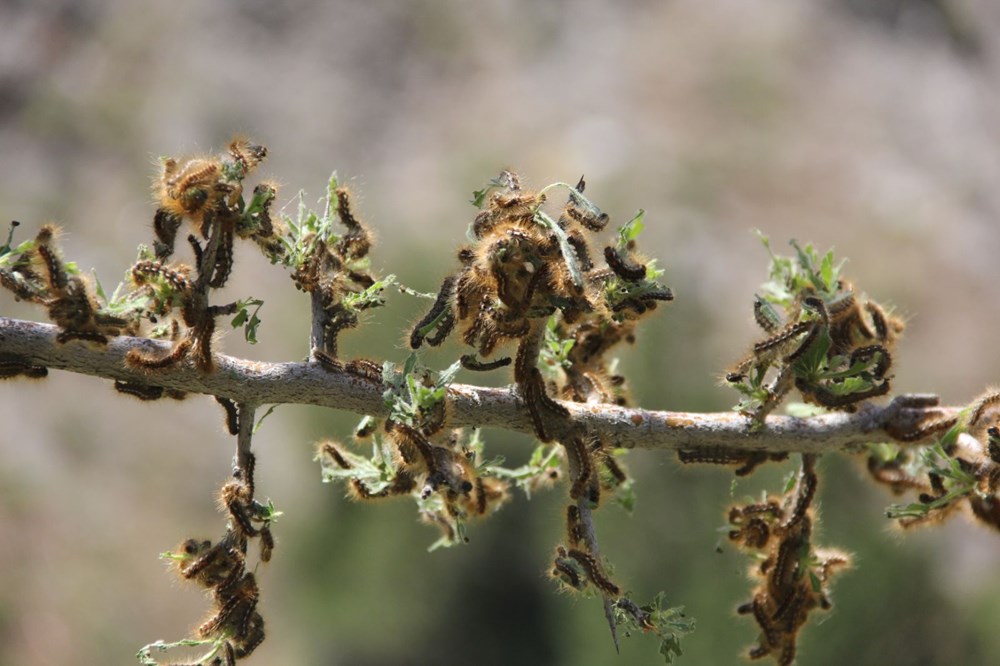 Arslan, geçen sene oluşan tırtıl kozalarının, ilkbaharda ağaçların yeşermesine müsaade etmediğini ve hiç birinde yaprak oluşmadığını ifade etti.