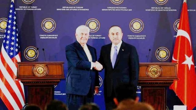 TC Dışişleri Bakanı Mevlüt Çavuşoğlu ve ABD Dışişleri Bakanı Rex Tillerson'un Ankara Palas'taki toplantısının ardından yapılan açıklamada, Türkiye ve ABD'nin müttefik ve stratejik ortak olarak güvenliklerine ve savunmalarına karşılıklı ve tartışmasız bağlılıkları teyit edildi.