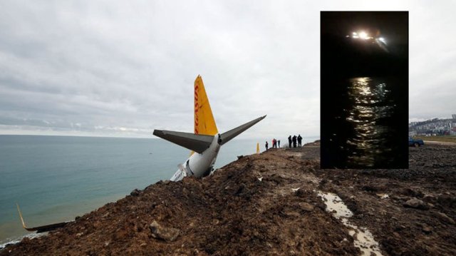 Ankara- Trabzon seferini yapan uçak Trabzon Havalimanı'na indikten sonra pistten çıkarak, denize 25 metre kala yamaca saplanmıştı