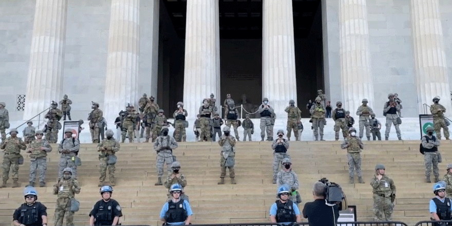 ABD Ulusal Muhafızlar Bürosu, önceki akşam başkent Washington DC'de 1300 ulusal muhafızın görev yaptığını ve dün akşam itibarıyla birçok eyaletten 1500 muhafızın daha kente intikal ettiğini açıklamıştı
