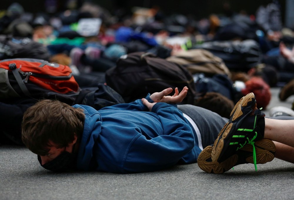 Öğleden sonra Beyaz Saray çevresinde toplanmaya başlayan göstericiler, bir süre oturarak eylem yaptı.