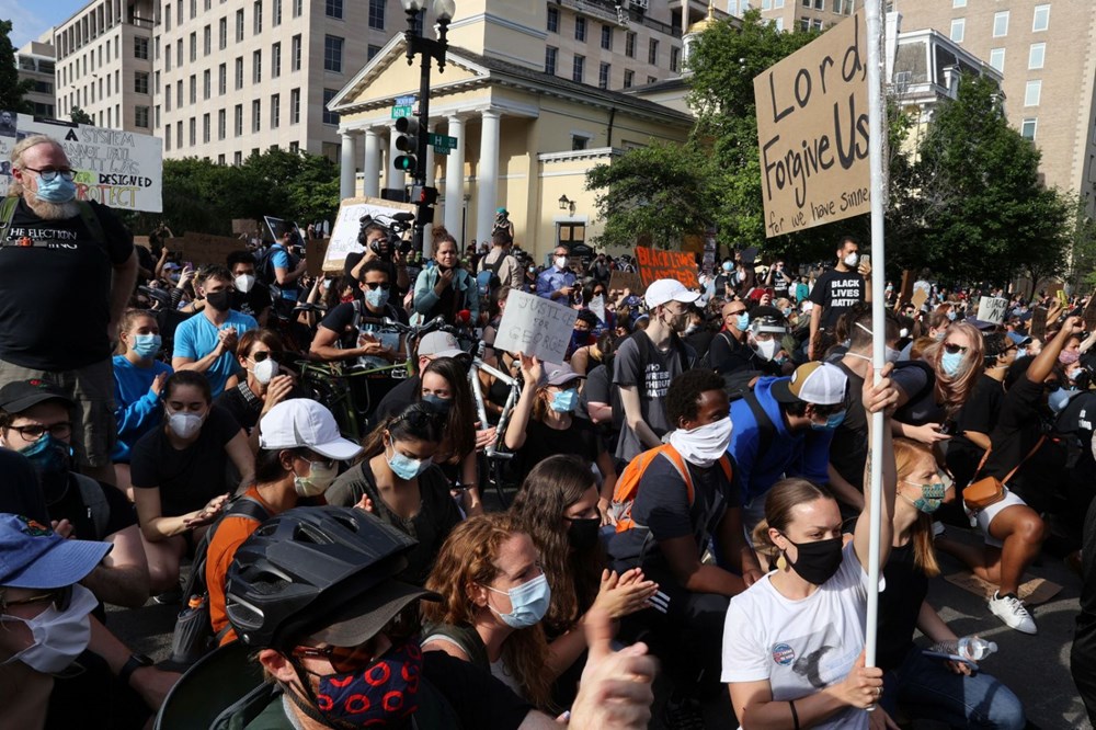 Floyd'un polis şiddeti sonucu ölümüne karşı Washington DC'de düzenlenen ve son günlerde şiddet eylemlerine dönüşen protestolar, bugün daha sakin bir ortamda yapıldı.