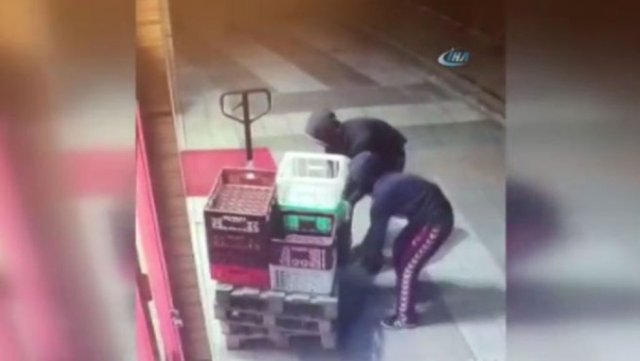 İHA'nın haberine göre, Tuzla'da geçtiğimiz günlerde bir dükkanın önünde meydana gelen olayda boş ekmek kasalarını çalan hırsızlar kameralara yakalandı. Kameralara yansıyan görüntülerde 2 hırsızın dükkanın önünde bulunan boş ekmek kasalarına yöneldiği görülüyor. Önce kısa süre etrafı kolaçan eden hırsızların üst üste bulunan yaklaşık 10 kasayı birlikte kucaklayarak hızla kaçmaya başladıkları görülüyor.