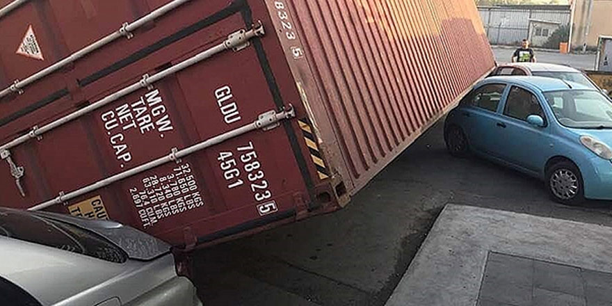 Mağusa Limanı’nda faciadan dönüldü. Boş konteyner araçların üzerine düştü