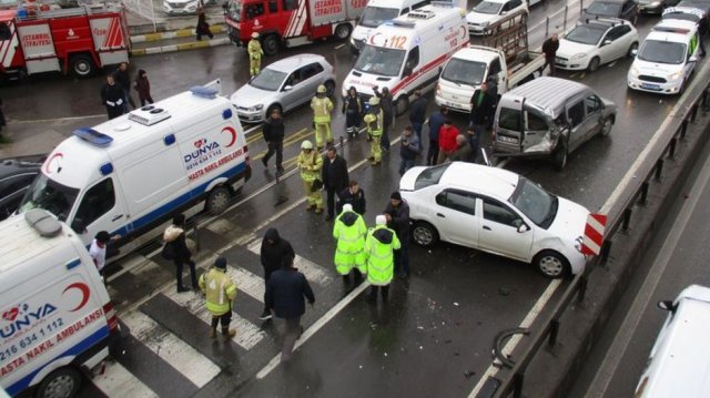 DHA'nın haberine göre kaza saat 13.00 sıralarında Şile yolu Üsküdar istikametinde meydana geldi. İddialara göre yağışlı hava nedeniyle kayganlaşan yolda kontrolden çıkan bir otomobil önünde seyreden araca çarptı. Kazaya toplam biri ambulans 5 araç karıştı. Kazayı gören vatandaşlar itfaiye ve sağlık ekiplerine haber verdi. Kazada hafif yaralanan 2 kişi ambulansla hastaneye kaldırıldı.
