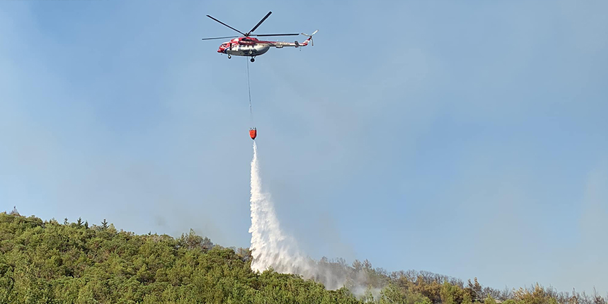 KKTC unsurlarının karadan sürdürdüğü söndürme ve yangının daha fazla alana yayılmaması çalışmalarına havadan da destek veriliyor.