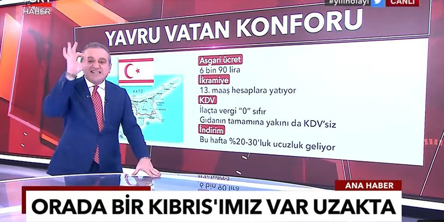 TGRT Haber'de Kıbrıs'ın kuzeyinde asgari ücretin 6 bin 90 lira olduğu belirtildi, ikramiye olarak hesaplara 13'üncü maaş yattığı konuşuldu, ilaçta ve gıda ürünlerinin tamamına yakınında Katma Değer Vergisi'nin sıfır olduğu vurgulandı. Haber sunumunda ayrıca "Bu hafta % 20-30'luk ucuzluk geliyor" ifadeleri de dikkat çekti.