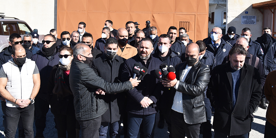 KTAMS Genel Başkanı Güven Bengihan ve Kamu-Sen Genel Başkanı Metin Atan, bugün, Merkezi Cezaevi’nde çalışan gardiyanların da katılımıyla, Merkezi Cezaevi’ndeki sıkıntılara ilişkin basına açıklamalarda bulundu.