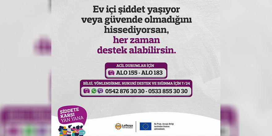 Dr. Ömür Yılmaz: “Sosyo-ekonomik durum, yaşadığı bölge, cinsel yönelim veya cinsiyet kimliği, vatandaşlık veya muhaceret durumu gibi hiçbir ayrım gözetilmeksizin her türlü bilgilendirme, yönlendirme, adli yardım ve sığınma talepleri için Lefkoşa Türk Belediyesi Aile İçi Şiddetle Mücadele Ekibi’ne 0542 876 30 30 ve 0533 855 30 30 numaralı telefonlardan 7/24 ulaşabilirsiniz.