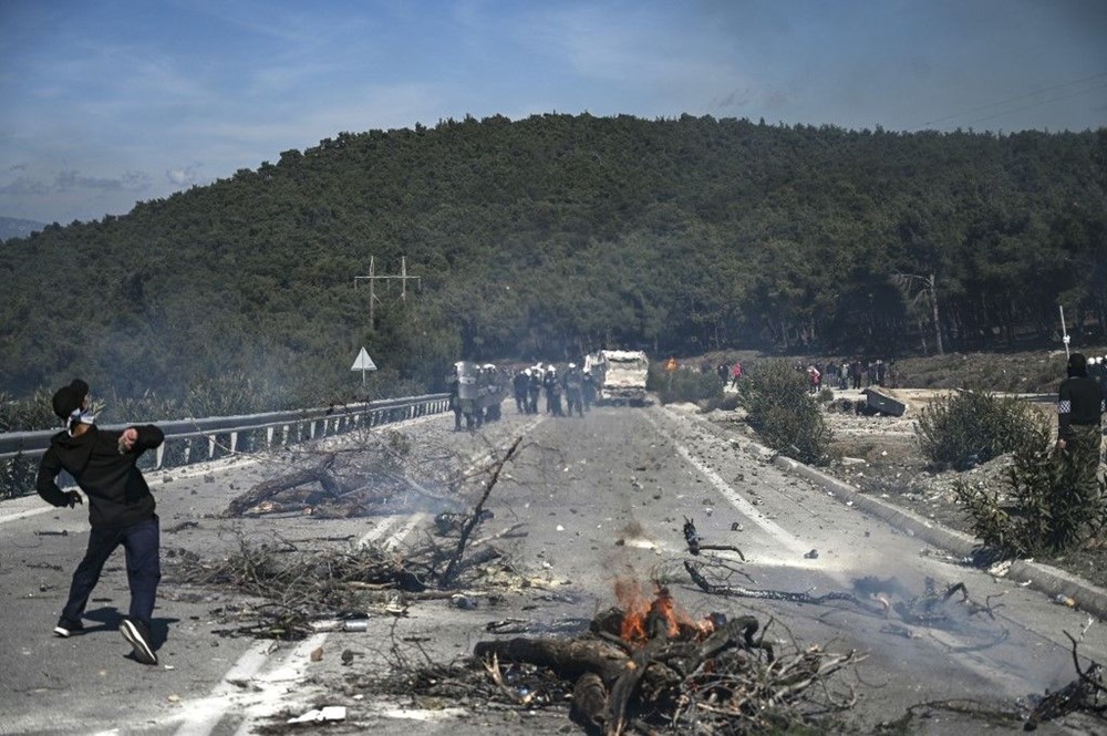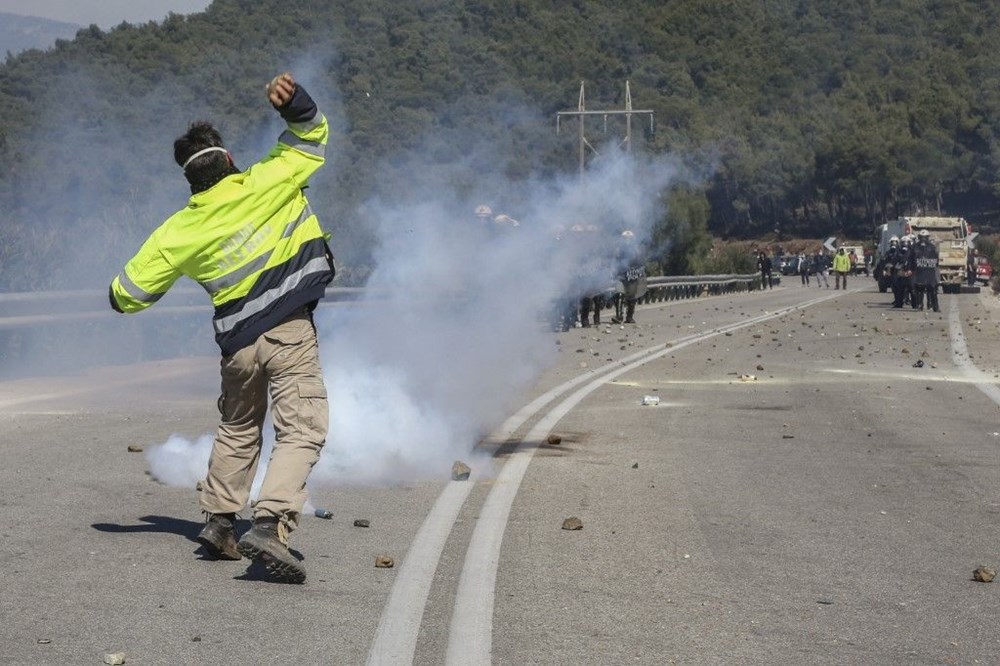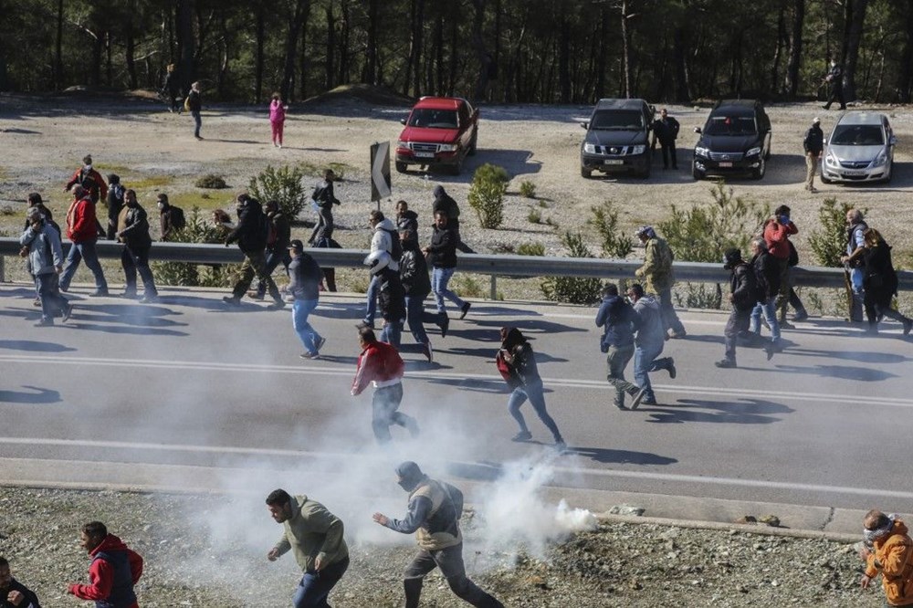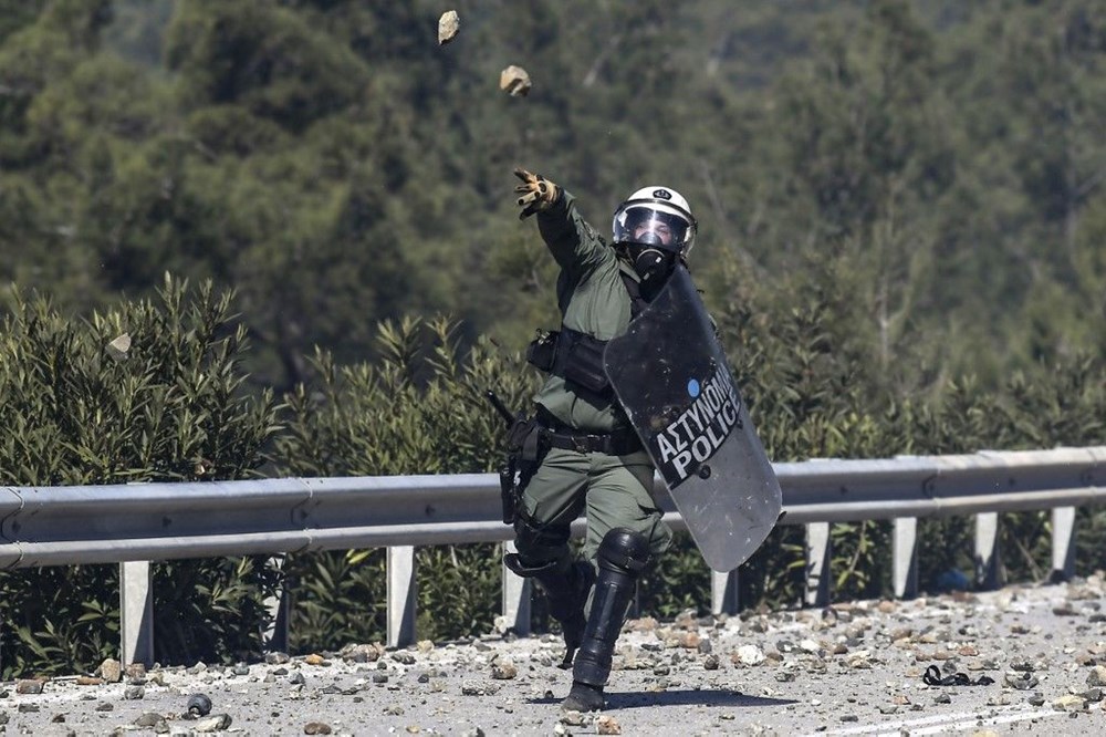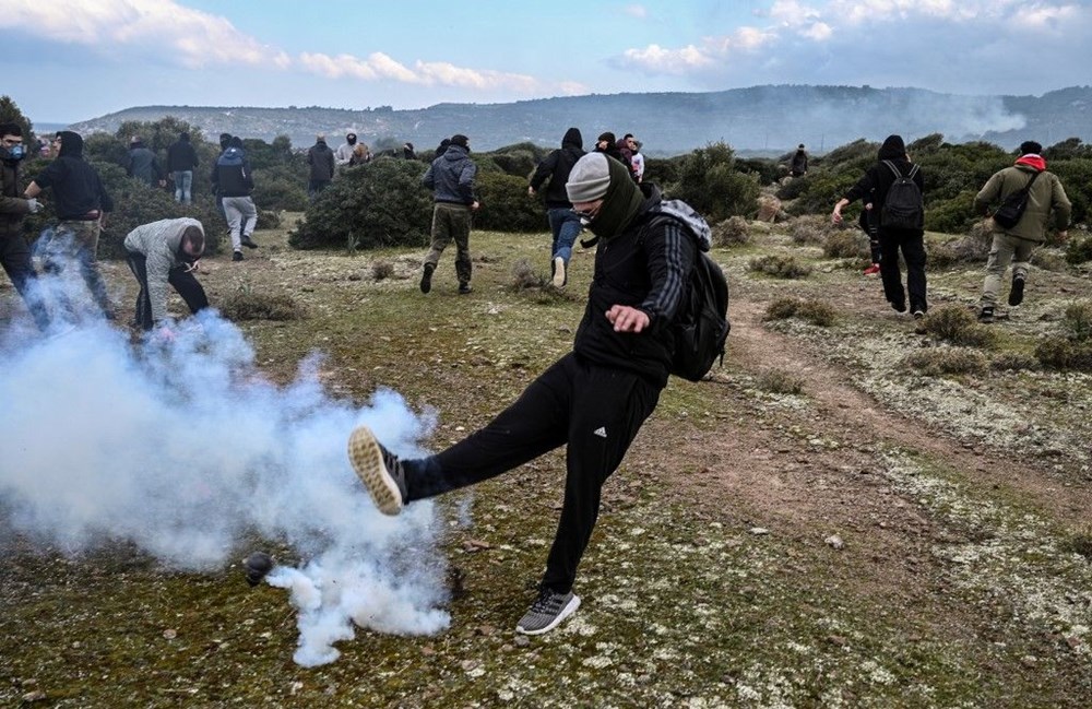 Yunan polisi kalabalığı dağıtmak için gözyaşartıcı gaz kullandı. Sakız adasından da benzer görüntüler geldi.