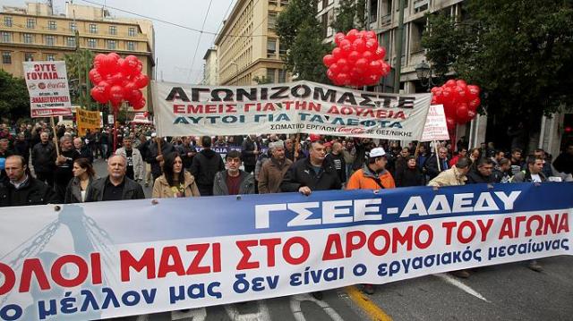 Yunanistan Kamu Çalışanları Federasyonu (ADEDY), İşçi Sendikaları Genel Konfederasyonu (GSEE) ve Mücadeleci İşçi Kolları Birliği'nin (PAME), toplu sözleşmeler, grev hakları ve asgari ücretin artırılması çağrısıyla grev kararı aldı.