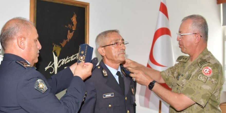 Polis Genel Müdür II. Yardımcısı Zaifer’in özgeçmişinin okunmasının ardından, GKK Tümgeneral Zorlu Topaloğlu ve PGM Kasım Kuni tarafından Zaifer’e rütbeleri takıldı.